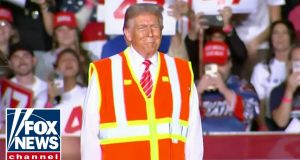 Trump stuns in sanitation outfit while giving presser from garbage truck